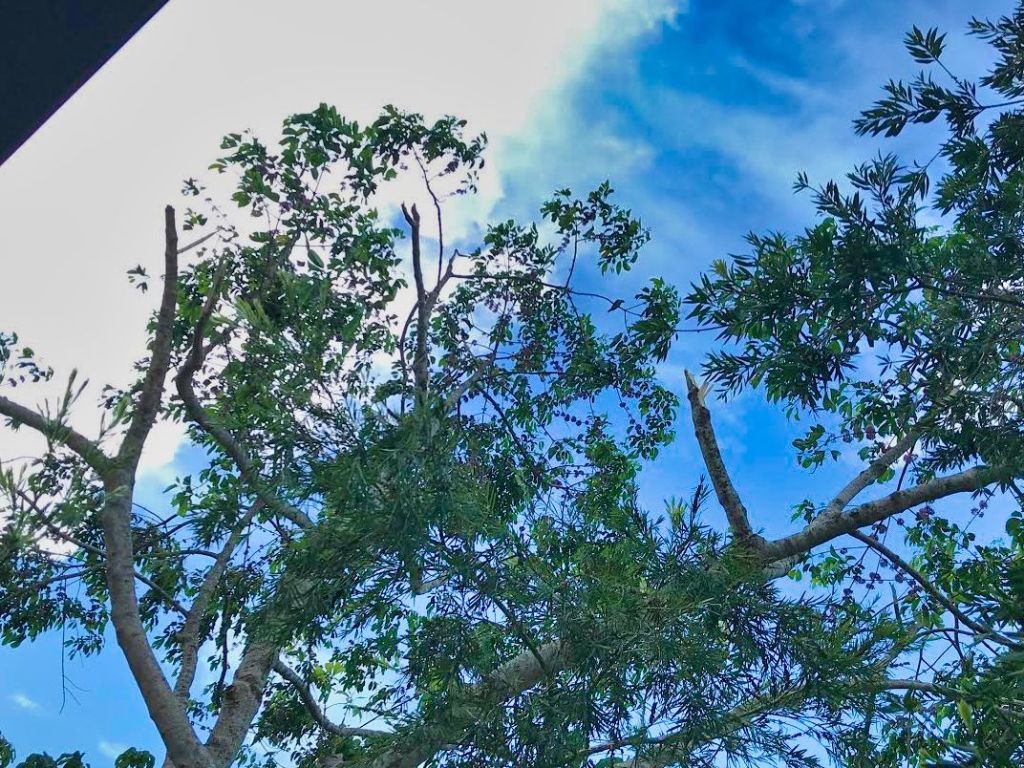 Snapped branches on the Euodia at the front of our house. Rainbow lorikeets were back feeding regardless.