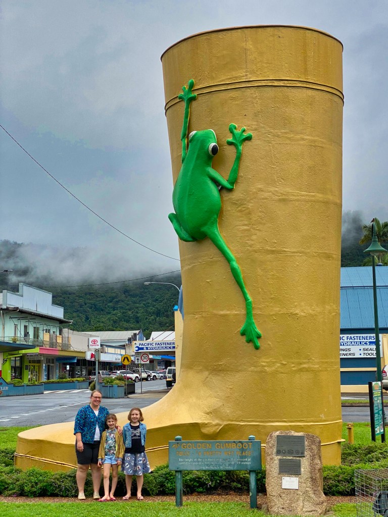 Although Tully is often referred to as the ‘Wettest Place in Queensland’, the coveted Golden Gumboot honour for recording North Queensland’s highest annual rainfall has actually gone to Babinda for the past few years. Nonetheless, Tully (average annual rainfall of 4,490mm, with a 2019 total of 3,278mm) proudly boasts a Golden Gumboot that stands 7.9 metres tall, representing the Australian record 7,900mm of rain recorded in 1950. There is a viewing platform at the top, but the doorway was locked when we stopped by, so photos were limited.