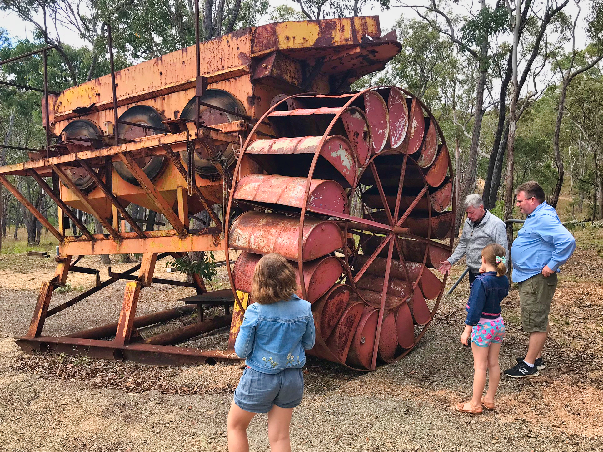 At the front of the museum there was a rather large collection of old mining machines. Grandad explained how the the five head stamp battery worked.